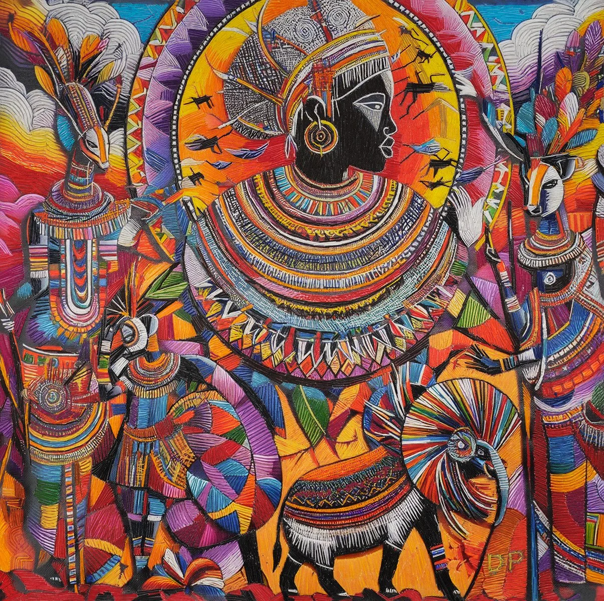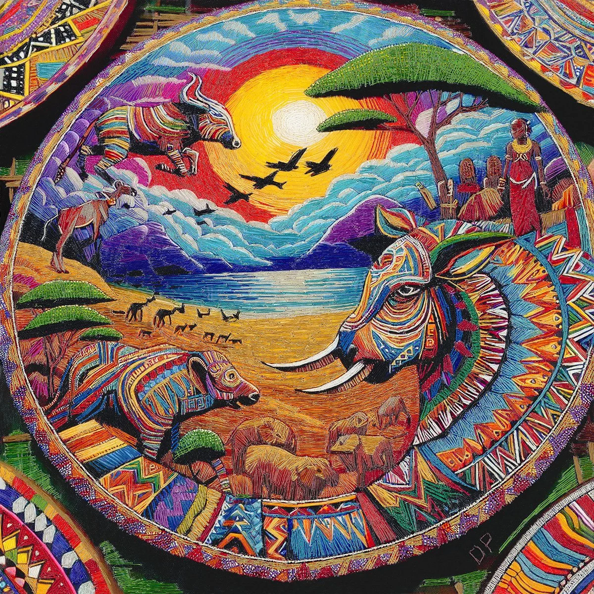 Massai Tribe 2024 45.72 x 45.72 centimeters Embroidery on canvas