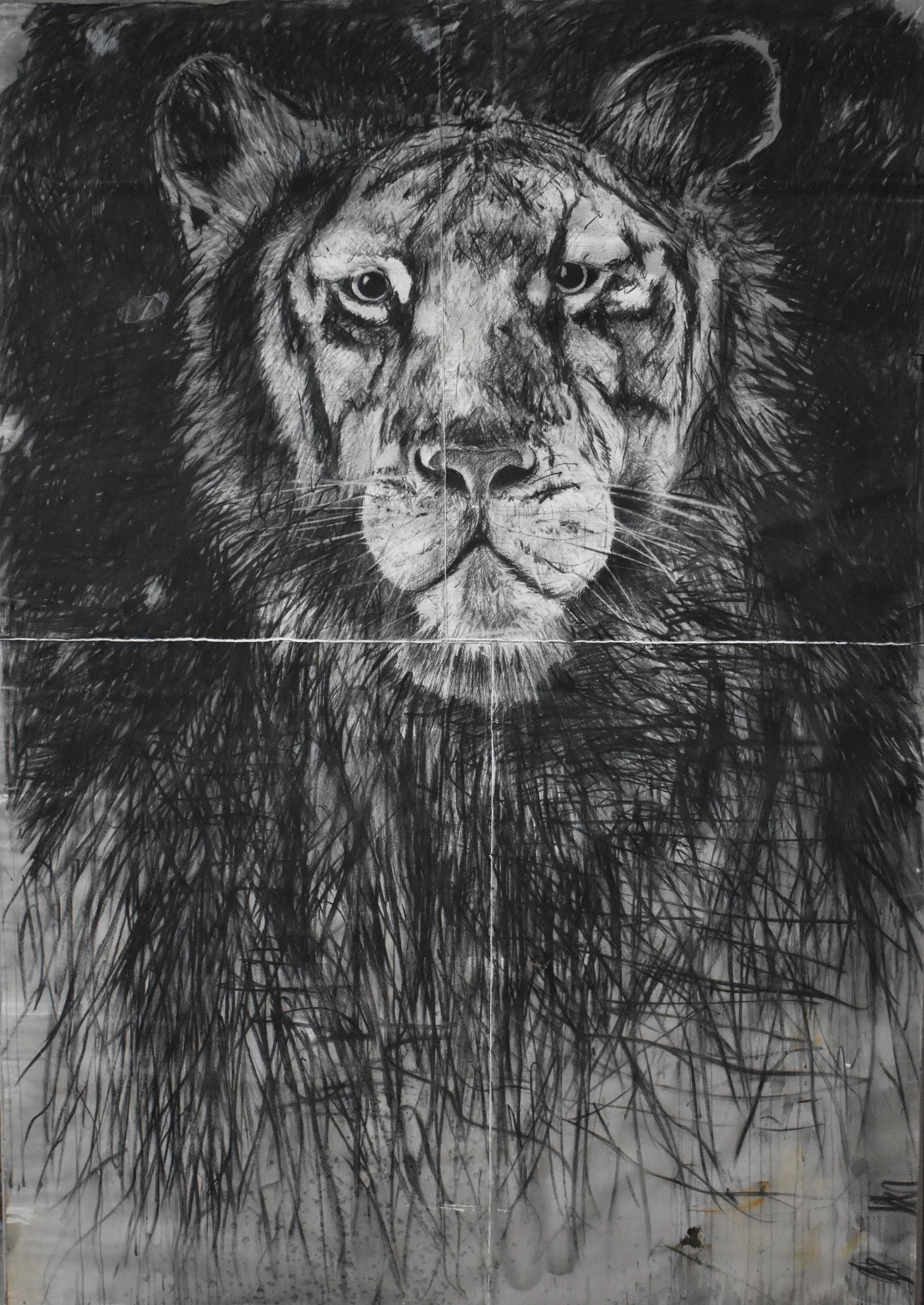 Liger, 2020,charcoal and ink on handmade paper, 140x200cm