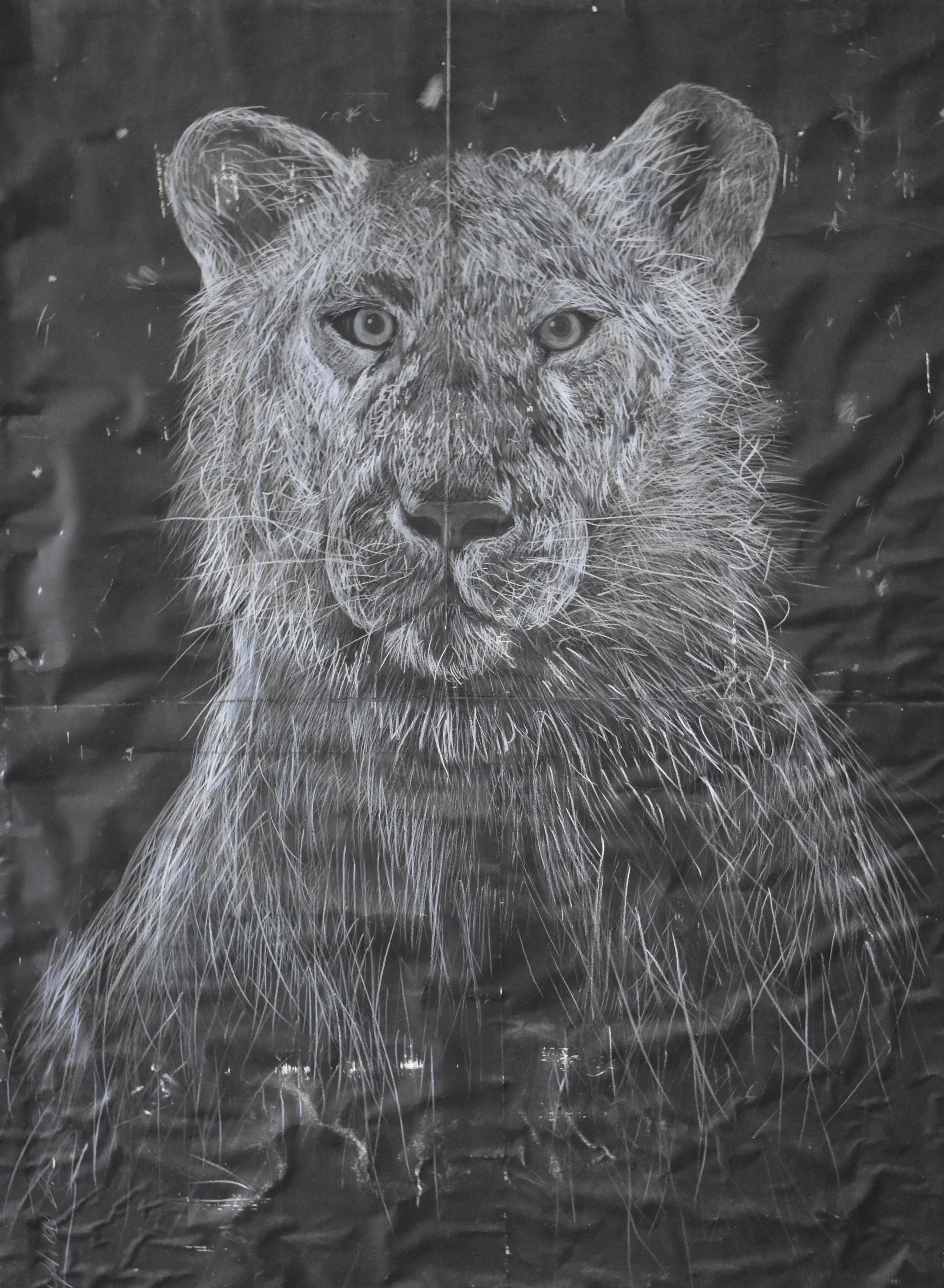 White liger,2020,white charcoal and ink on handmade paper, 140 x200cm