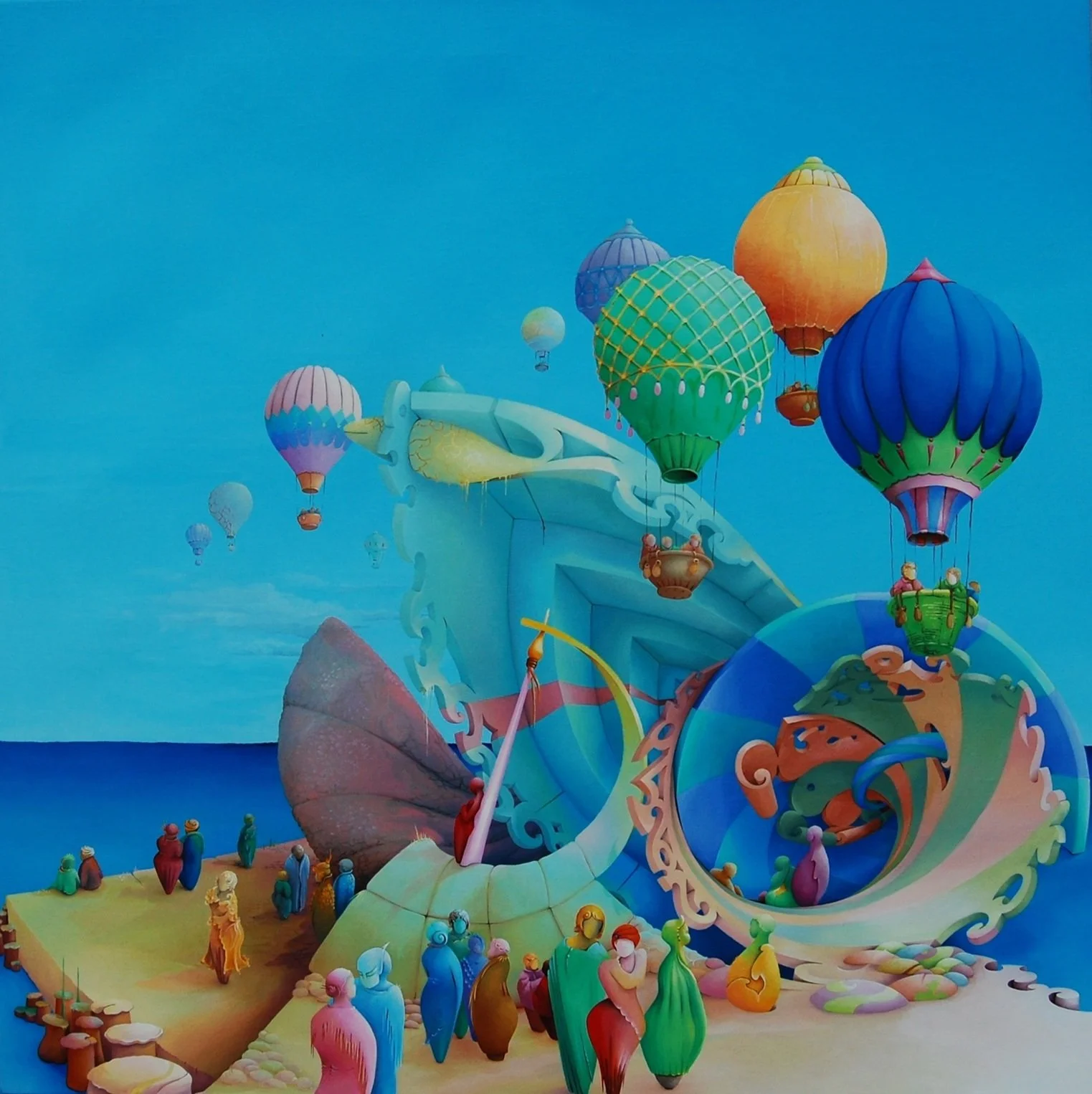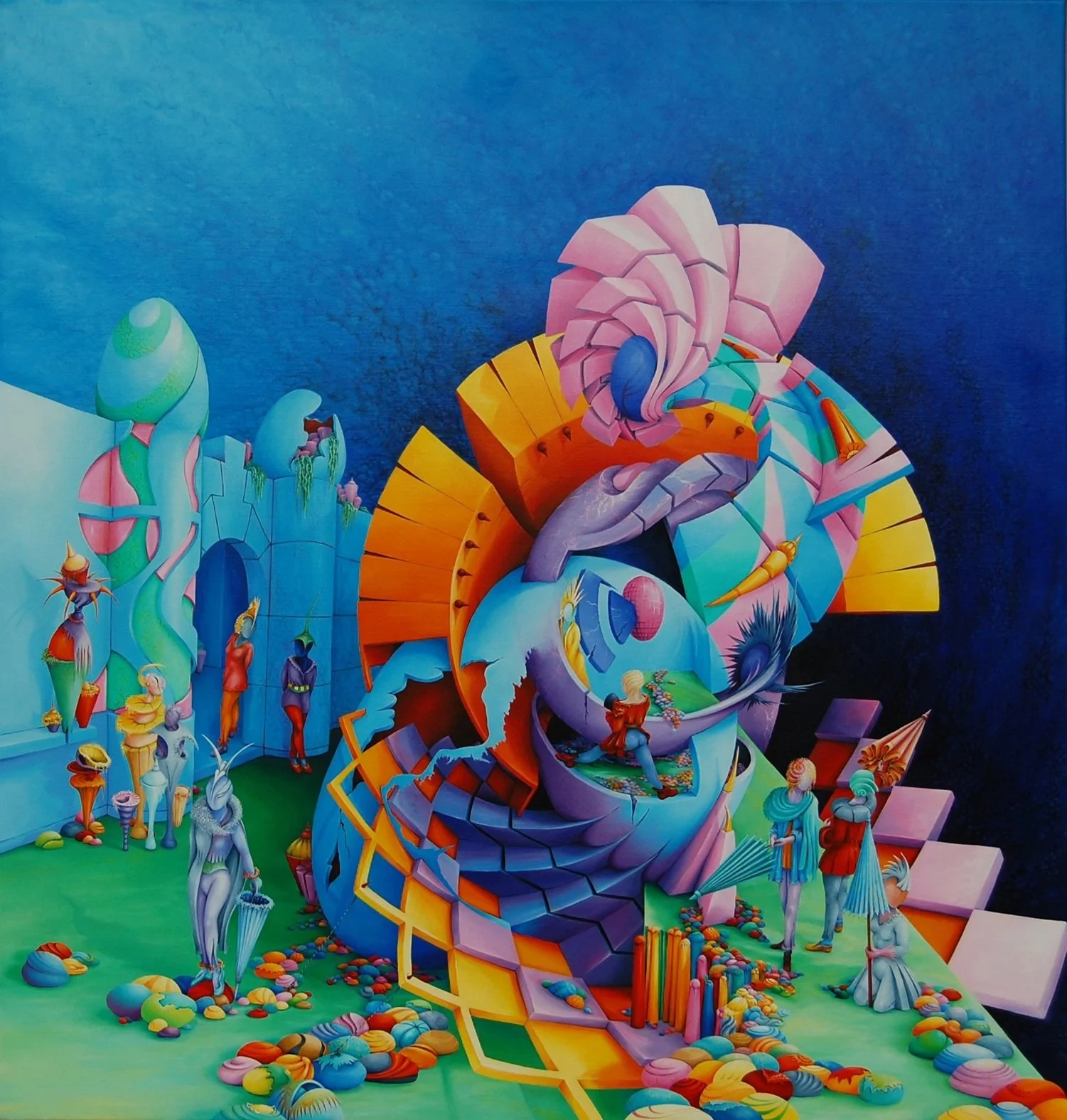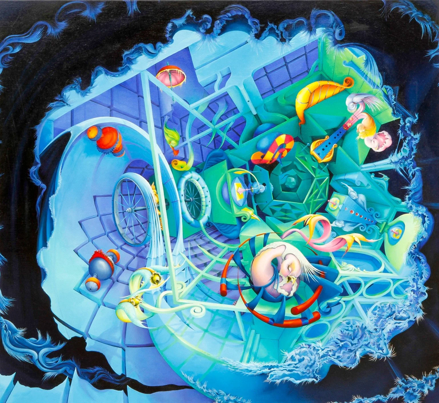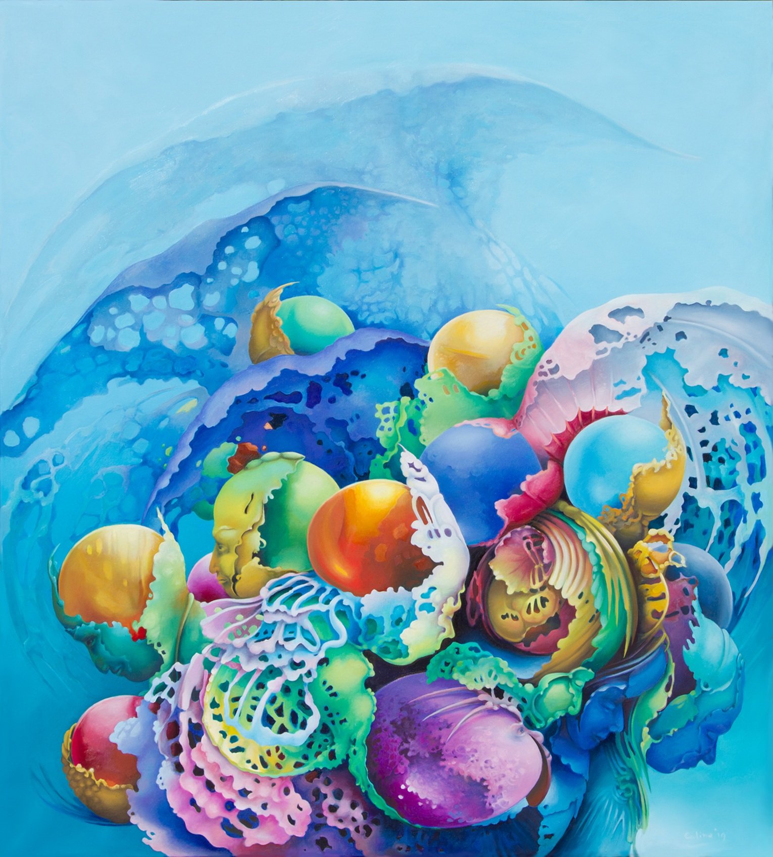 Symona Colina is a Dutch-born visual artist (born 1954). She lives and works in Italy, is known for both large canvases and intimate drawings that emphasise rhythm, line, and the sensation of movement, exploring perspective. Symona Colina’s practice bridges abstraction and lyrical figuration and layered spatial fields as organising metaphors. Perspective becomes a metaphysical realm rather than a purely technical device. Recurring motifs include vortex‑like forms, luminous orbs, and biomorphic structures rendered in saturated palettes. Symona Colina has exhibited at major fairs and institutions across Europe and the United States, including Palazzo Vecchio (Florence), Carrousel du Louvre (Paris) and numerous galleries and biennials in Rome, Amsterdam, Turin, and Prague.
