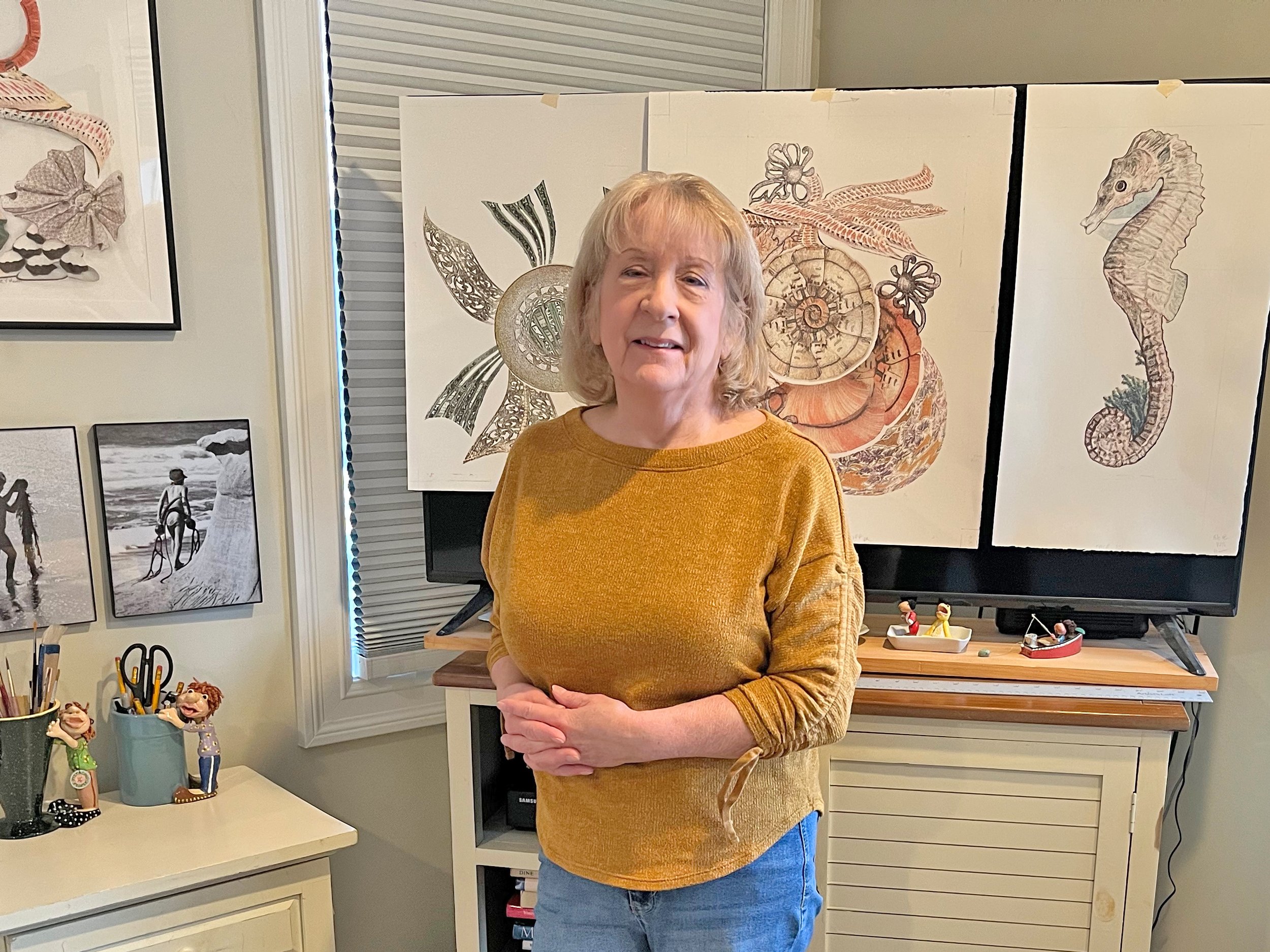 Valerie Meotti is a multidisciplinary artist whose work integrates watercolor, photography, and experimental digital processes informed by traditional printmaking. She began creating watercolors and illustrations in their teen years and later entered the lithographic printing industry as an apprentice, gaining extensive experience in 4-color offset printing, color theory, retouching, photography, and early computer graphics. During this time, Valerie was exposed to leading contemporary artists through work associated with United Limited Art Editions (ULAE), under the direction of Bill Goldston. Encounters with the work of Robert Rauschenberg, Jim Dine, and Larry Rivers—particularly Rauschenberg’s layered and process-driven approach—had a lasting influence on their artistic direction. Alongside a 35-year career as a professional graphic designer, [Artist Name] developed a unique hybrid studio practice. Their current work combines original photography and painted elements into digital composites, which are printed in layers using archival Epson inks and transferred by hand onto high-quality watercolor paper. This labor-intensive process creates textured, painterly surfaces that reference traditional lithography while embracing chance and imperfection. Each piece is further refined with hand-applied watercolor, charcoal, pencil, and occasional collage. All works are produced as singular, one-of-a-kind originals.