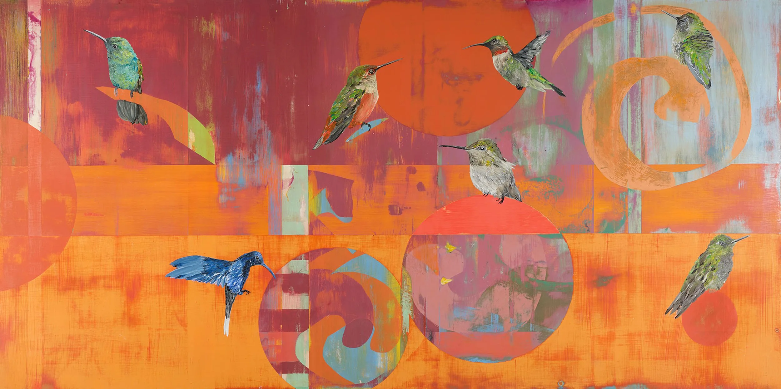 Jennifer, your paintings seamlessly intertwine abstraction and figuration, particularly through the recurring motif of birds, which carry profound historical and spiritual symbolism. How do you see your avian imagery operating within this dialogue between freedom and structure, and in what ways does it reflect your personal negotiation between spontaneity and discipline in the studio?