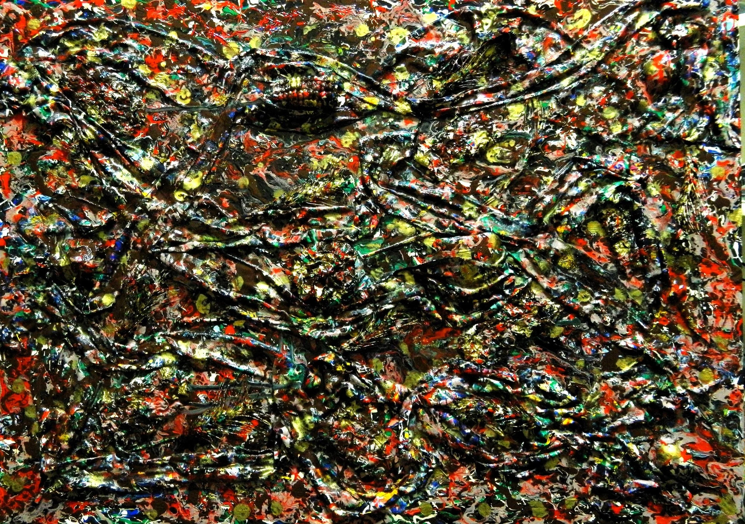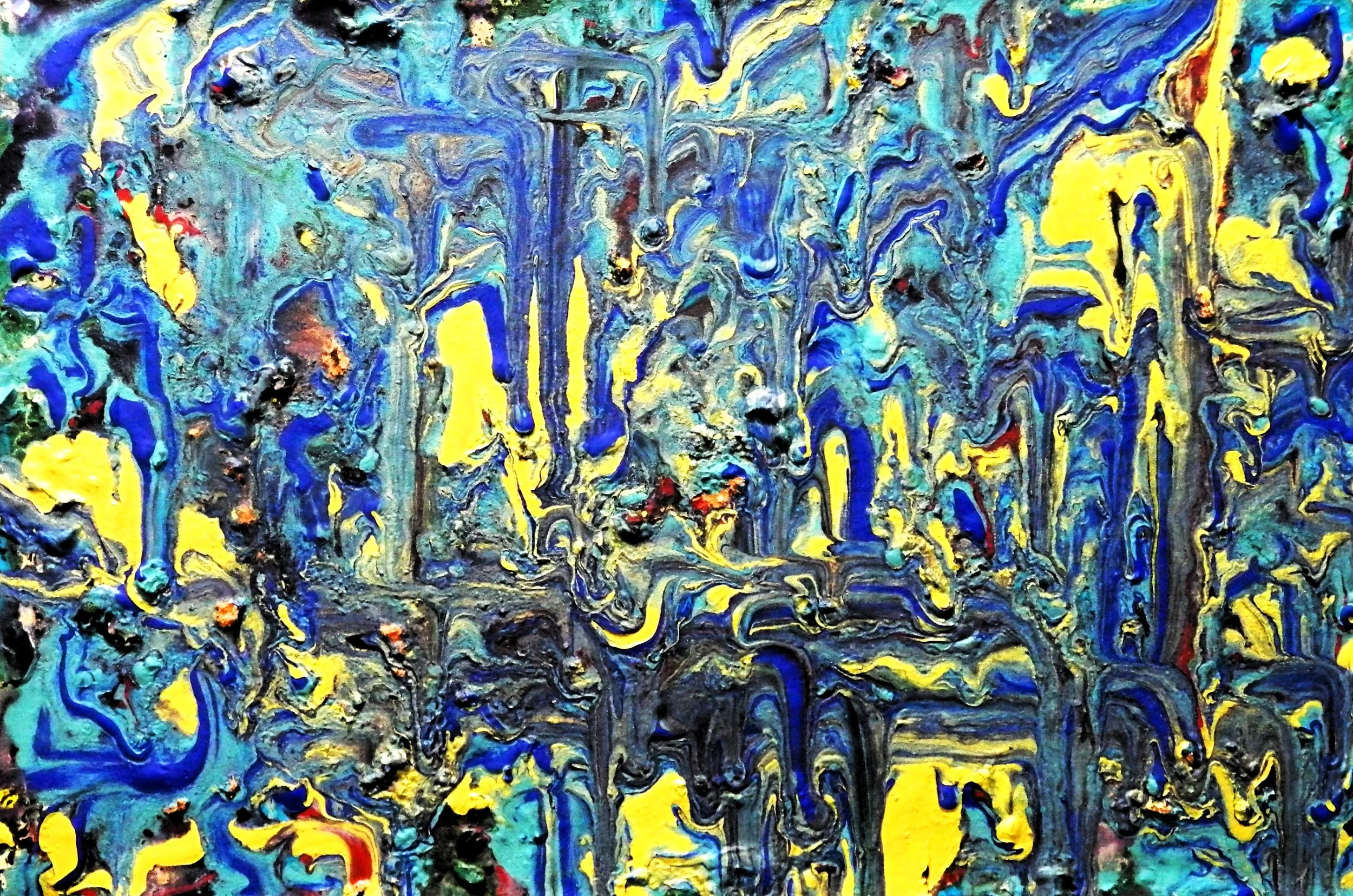 Over time, as I became more introspective about my work, I encountered an interesting situation. As the paintings neared completion or were finished, various shapes and forms of people, animals or unidentifiable souls would appear on the surface mostly within abstract ones. These would change depending on the light the painting received. I allowed for the possibility that my fantasy world might be perceptual errors in my paintings, but I tried to make the observation as objective as possible. They were still there.