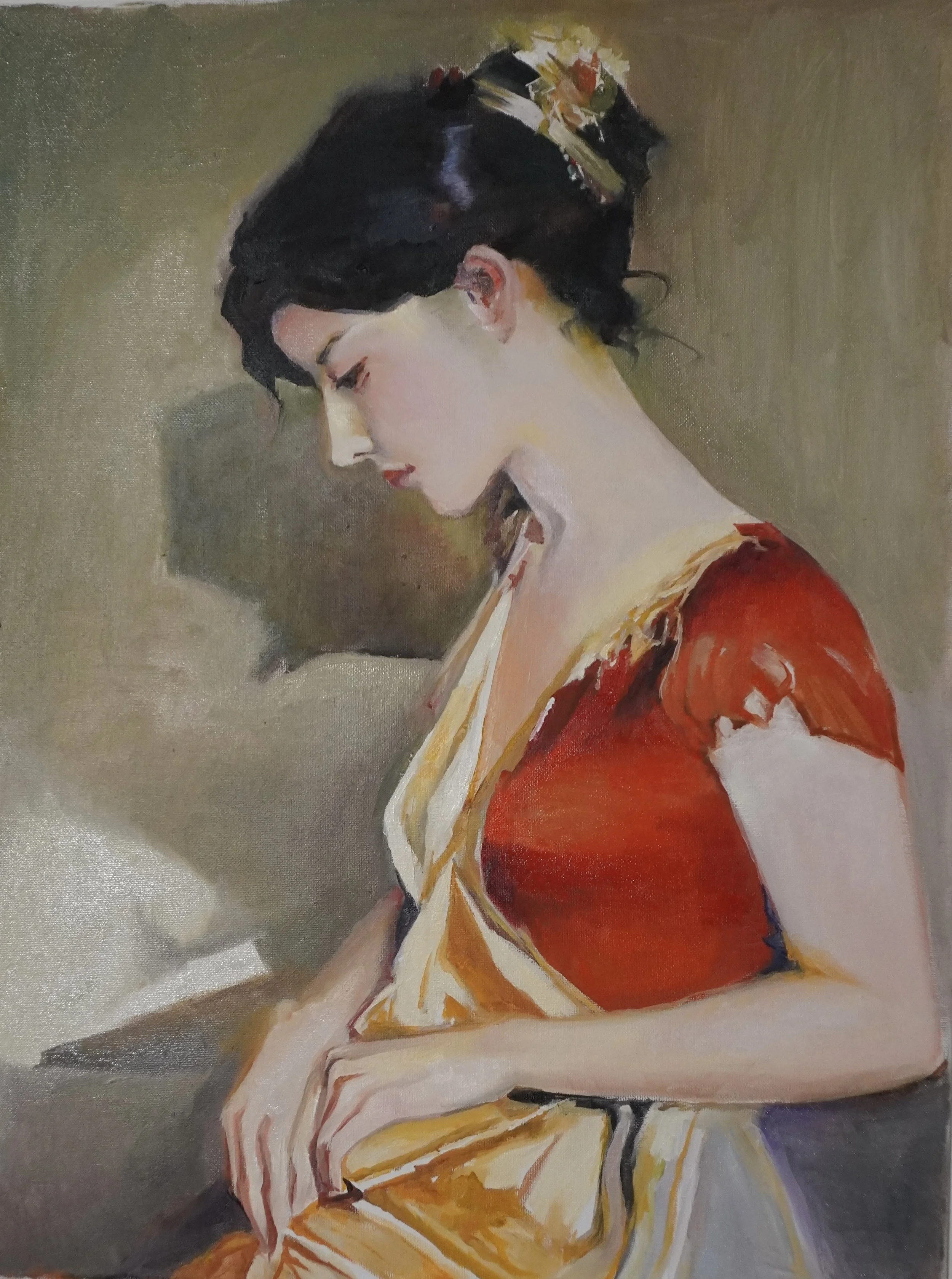 Natural beauty is often fleeting—sunsets, morning light, a fleeting glance. Classical art seeks eternity, distilling human experience and spirit to its highest form. In my work, I strive to combine the two—to capture the moment and freeze it into eternity. I often use sketches or quick drawings to record inspiration in the moment, then slowly refine in oil painting to elevate it into a timeless artistic expression. As Leonardo da Vinci said, “Painting is a frozen poetry.”