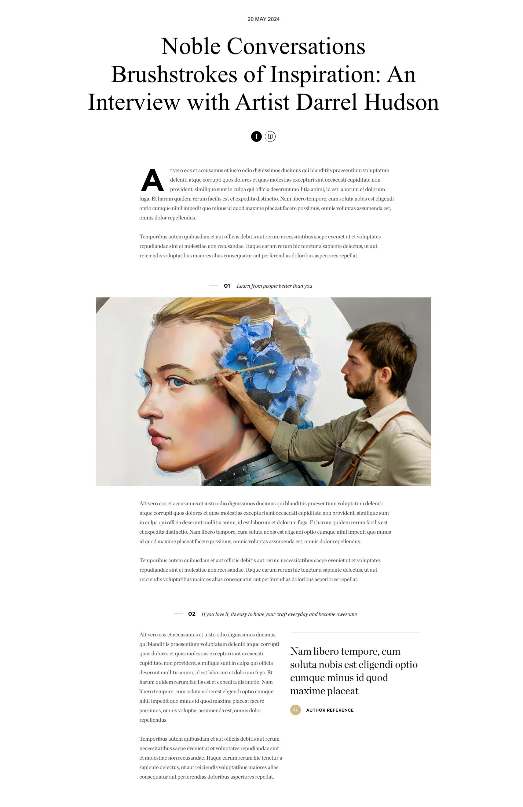 1. NOBLE CONVERSATIONS, curated interviews on the Contemporary Art Collectors website that delve into today's most inspirational artists' journeys, inspirations, and visions.